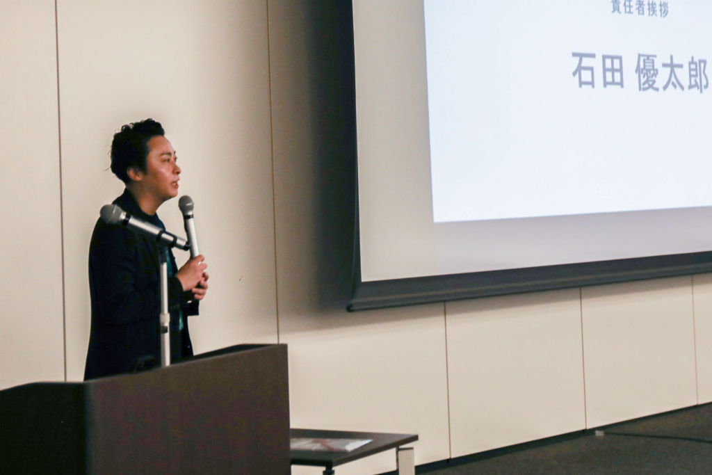 MCによる開会宣言に続いて登場したのは、FIDIA SOLUTIONSの代表取締役であり、本コンテストの責任者でもある石田さん。その第一声が放たれた瞬間、挑戦の舞台が静かに動き出しました。