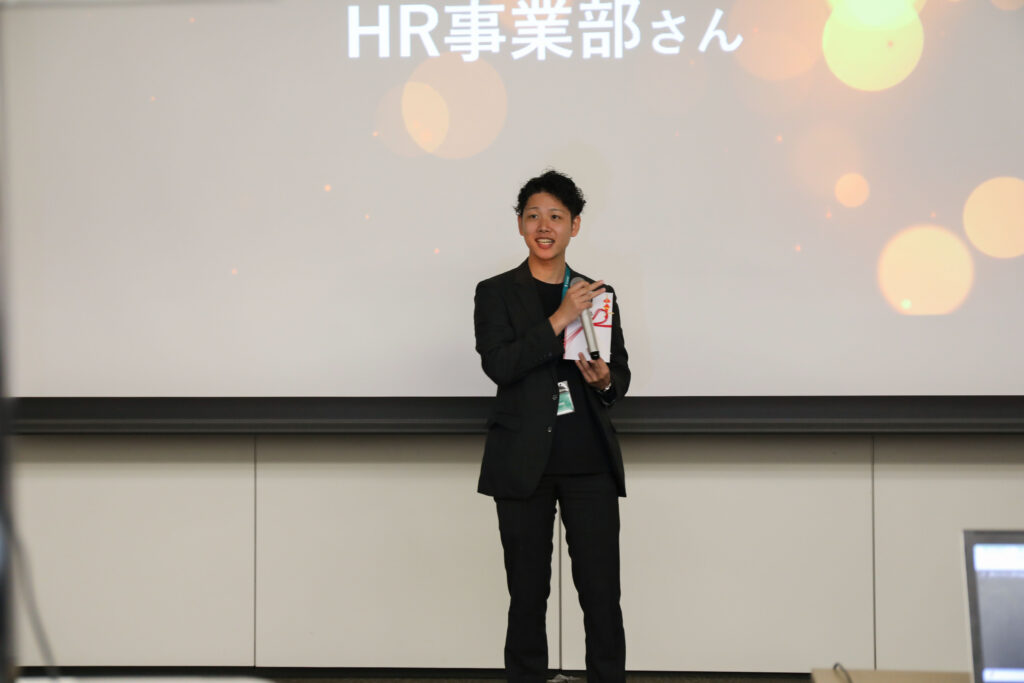 前半に登壇したのは、マーケティング部門・管理本部・HR事業部の3チーム。