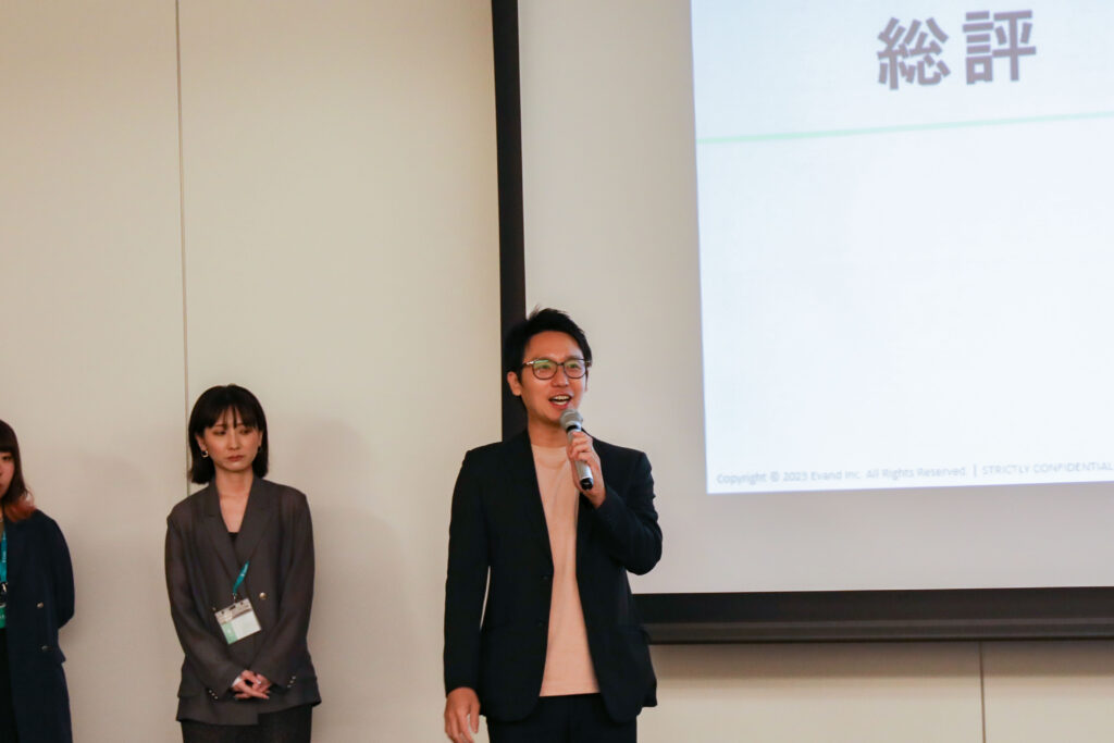 グランプリに選ばれたHRチームは、着眼点の鋭さ、現実的な実装可能性、そして事前調査の丁寧さが光っていた。非常に完成度の高い提案で、挑戦する価値があると判断したので、正式にプロジェクトチームを発足します。もちろん、進めていく中で課題に直面するかもしれませんが、それも含めて一緒に取り組んでいきましょう!」